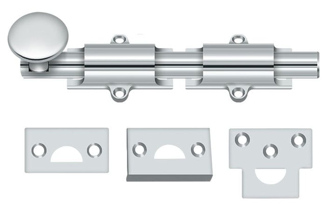 Deltana 6SB26 6" Surface Bolt; Heavy Duty; Bright Chrome Finish