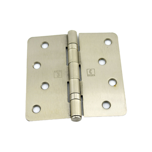Hager RCBB1741415EA14 4" x 4" 1/4” Radius Full Mortise Residential Weight Ball Bearing Hinge Satin Nickel Finish