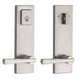 Baldwin Prestige 183SPEXSPLSQR15S Complete Entrance Set with Single Cylinder Deadbolt with Lever by Lever Spyglass Square Design with RCAL Latch; RCS Strike; and SmartKey Satin Nickel Finish