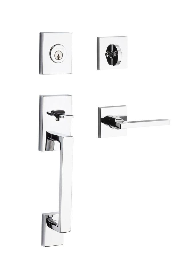 Baldwin Reserve SCLAJXSQUCSR260S Single Cylinder La Jolla Handleset Square Lever Contemporary Square Rose with 6AL Latch; Dual Strike; and SmartKey Bright Chrome Finish