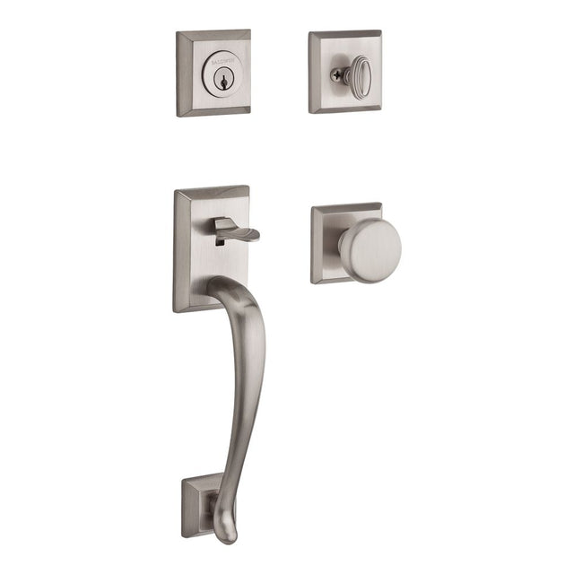 Baldwin Reserve SCNAPXROUTSR150 Single Cylinder Napa Handleset Round Knob and Traditional Square Rose with 6AL Latch and Dual Strike Satin Nickel Finish