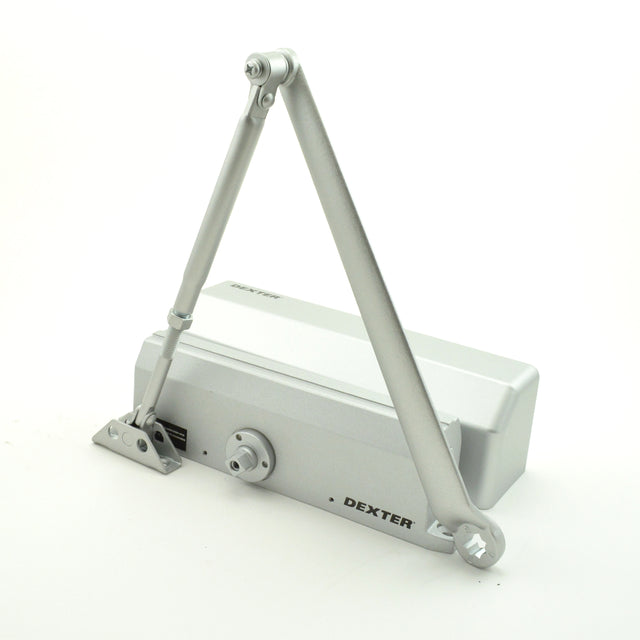 Independent Adjustment Values: Sweep Speed, Latch Speed, and Back-Check,Universal Hardware Pack,Non Handed,Allegion’s Dexter Commercial Hardware Product Line Provides You a Cost Competitive Option of Heavy Duty Surface Door Closers,Limited 5 Year Mechanical Warranty