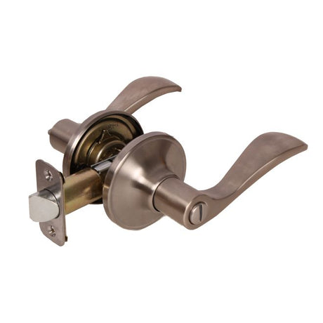 Pamex FLU601 Calypso Lever with Round Rose Privacy Lockset Grade 3 Satin Nickel Finish