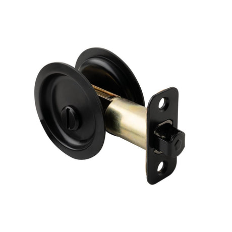 Pamex PF2910 Privacy Round Sliding Door Lock with 2-3/8" Backset Standard Matte Black Finish