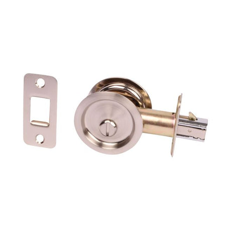 Pamex PF2P10 Privacy Round Sliding Door Lock with 2-3/8" Backset Standard Satin Nickel Finish