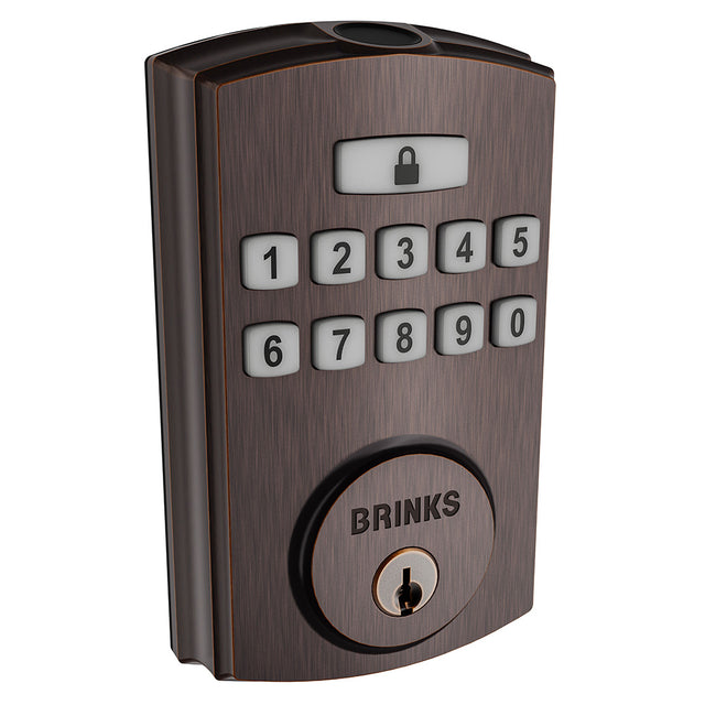 Brinks 4392150.BRINKS Electronic Fingerprint Keypad Deadbolt with Pro Guard Tuscan Bronze Finish