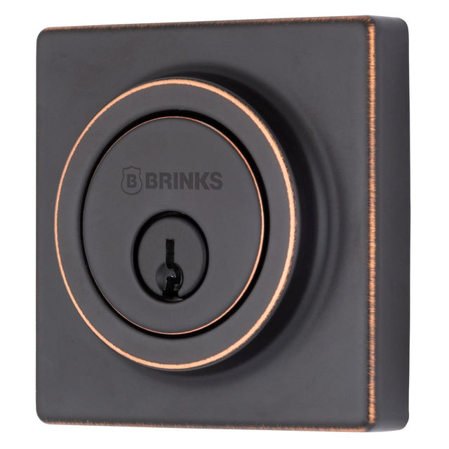 Brinks E2402150 Mendocino Series Contemporary Square Single Cylinder Deadbolt with 4 Way Adjustable Backset Tuscan Bronze Finish