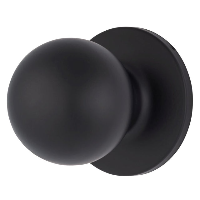 Brinks E2425122 Raleigh Series Passage Transitional Ball Knob and Round Rose with 4 Way Adjustable Latch and Round Corner Full Lip Strike Matte Black Finish