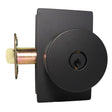 Emtek 5123ROUUS19.RLS Round Knob 2-3/8" Backset with Radius Latch Strike Keyed Entry with Modern Rectangular Rose for 1-3/8" to 2-1/16" Door Flat Black Finish